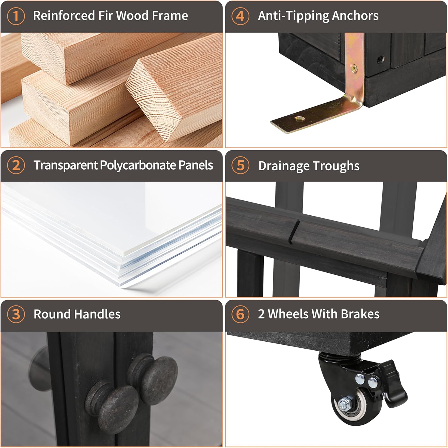 - PACE-SAVING VERTICAL GROWTH 31.5"x22.4" footprint (62"H) fits 18+ plants vertically without crowding balconies. FSC-certified fir wood + 4mm twin-wall polycarbonate panels block 99% UV rays (UPF 50+), tested for -15ยฐC~50ยฐC extremes.