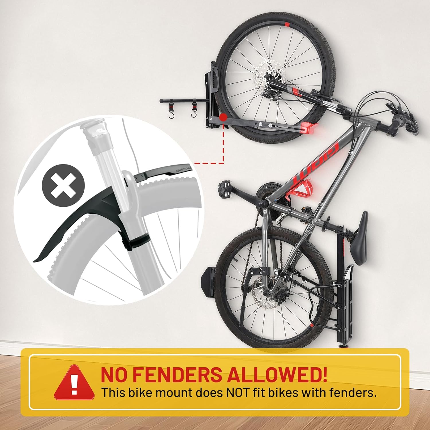 - 【Convenient Storage Hooks】Wall bike rack for garage in addition to securely holding your bike, the bike hangers for garage come with two extra storage hooks. You can hang helmets, locks, or other accessories on them for easy access and to prevent them from falling.