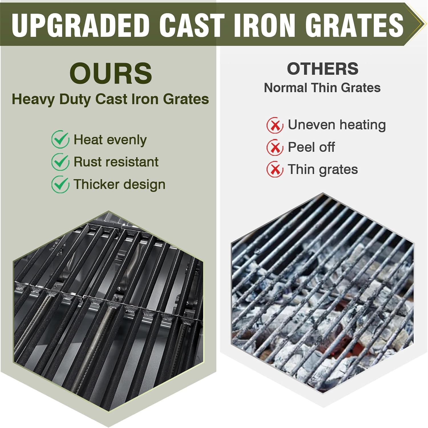 - 🔥 【Commercial-Grade Cooking Space】 Massive 647 sq in porcelain-enameled grates + 252.5 sq in warming rack. Fits 40+ burgers or 8 racks of ribs. Heavy-duty cast iron grates retain heat evenly for perfect sear marks.