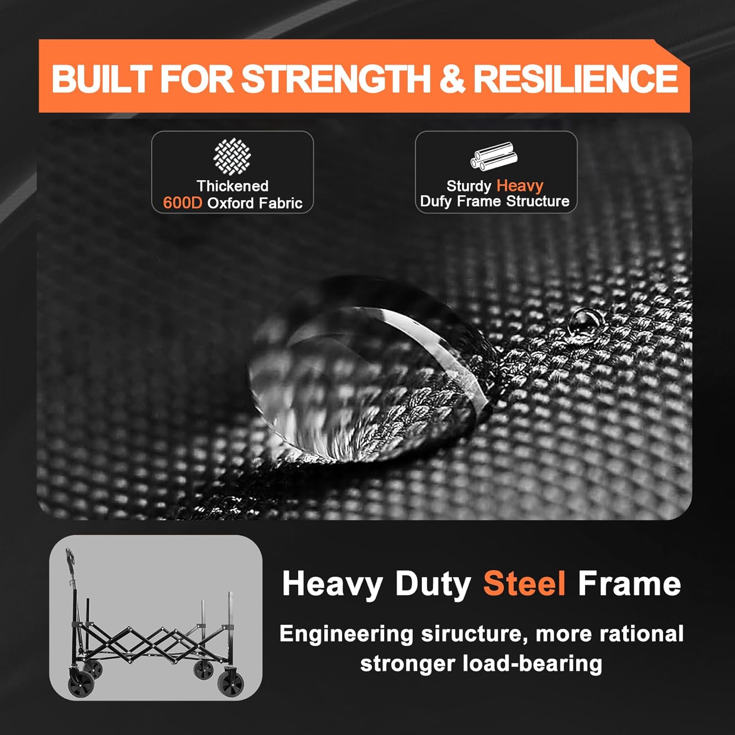 - STURDY&DURABLE WHEELS:The premium PVC wheels of this wagon cart are designed for all terrains.The front wheels can rotate 360ยฐand all wheels are removable,Convenient and practical