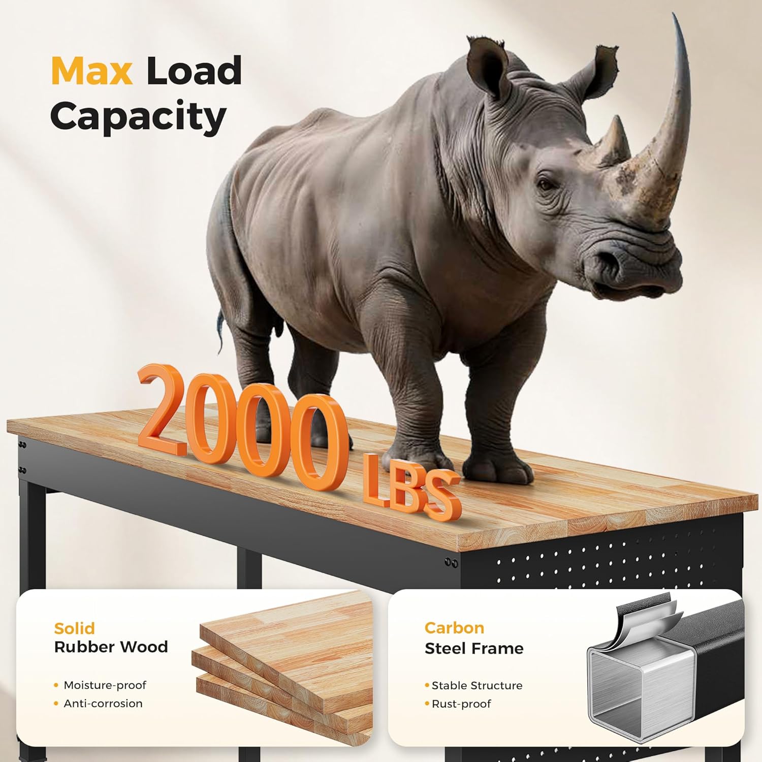 - Stable Structure: Tabletops made of rubber wood have a long lifespan and are environmentally beneficial;Premium carbon steel adjustable glides that can sustain heavy-duty tasks with a maximum load capacity of 2,000 pounds offer stability.