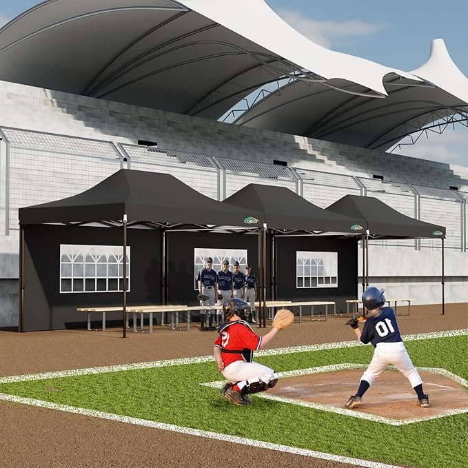 - [Included Accessories, Warranty Service] 1x Commercial Grade 10x15 Pop Up Tent Frame, 1x 420D Top Cover, 3x Window Sidewalls, 1x Double Zipper Door Sidewall, 8x Ground Pegs, 4x Windproof Ropes, 1x 1080D Rolling Bag, 1x Manual.We provide 1 year warranty service. If you have any problems and questions, please feel free to contact us, we will give you the best help. Choosing us means choosing a comfortable life.