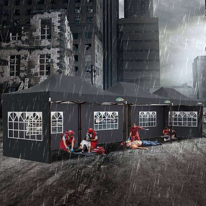 - [Upgrade Heavy Duty Canopy] The COBIZI 10x15 Heavy Duty Canopy features a commercial-grade full truss structure constructed from durable powder-coated stainless steel. The thickness of the 1.77 inch (45mm) hexagonal legs has been increased to 0.7mm/0.03 inches, providing superior stability and durability. Full truss design ensures exceptional sturdiness and rust resistance, capable of withstanding wind speeds of up to 30mph when properly secured with an number of sandbags, ropes, and stakes.