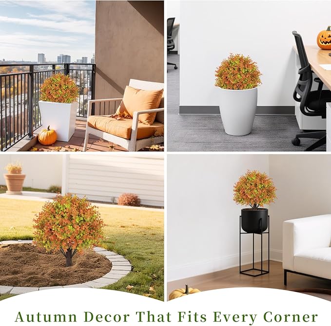 - 【Low Maintenance – Realistic with Minimal Shedding】Enjoy lush fall plants without watering or pruning. Like most lifelike faux plants, these fake bushes may shed a few loose leaves during setup or handling—this is normal and helps create a more natural look.