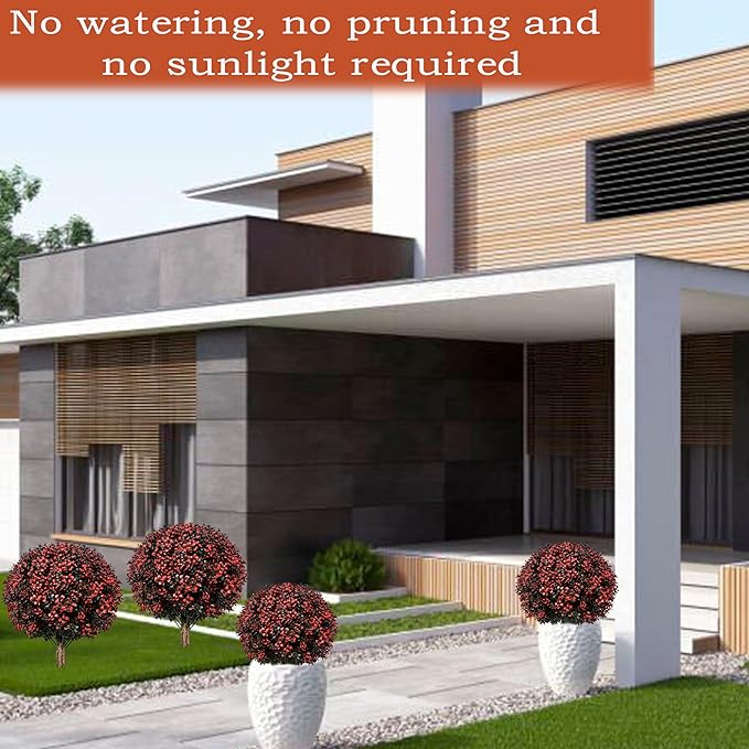 - 🌿Realistic Boxwood Topiary Ball Trees:made from high-quality materials for a natural look for year-round. Lifelike design:new red+green boxwood leaves like red flowers growing on the trees you planted.