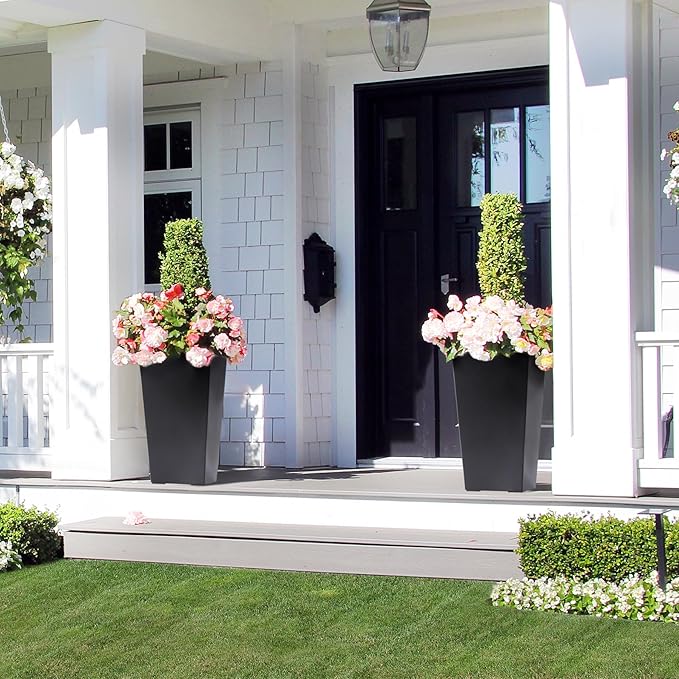 - Stylish and Durable Design: The outdoor planters are crafted with classic injection molding that showcases a classic smooth finish. Made of high-quality, durable, weather-resistant plastic, these tall planters maintain their color and structural integrity throughout the seasons