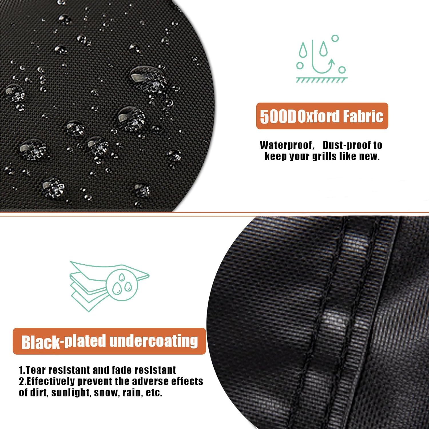 - 600D Oxford Fabric: Outdoor grill electric cover is made of 600D thickness polyester fabric with black sun fade protective liner, and double stitches sewing. Which is more waterproof, tear resistant and fade resistant