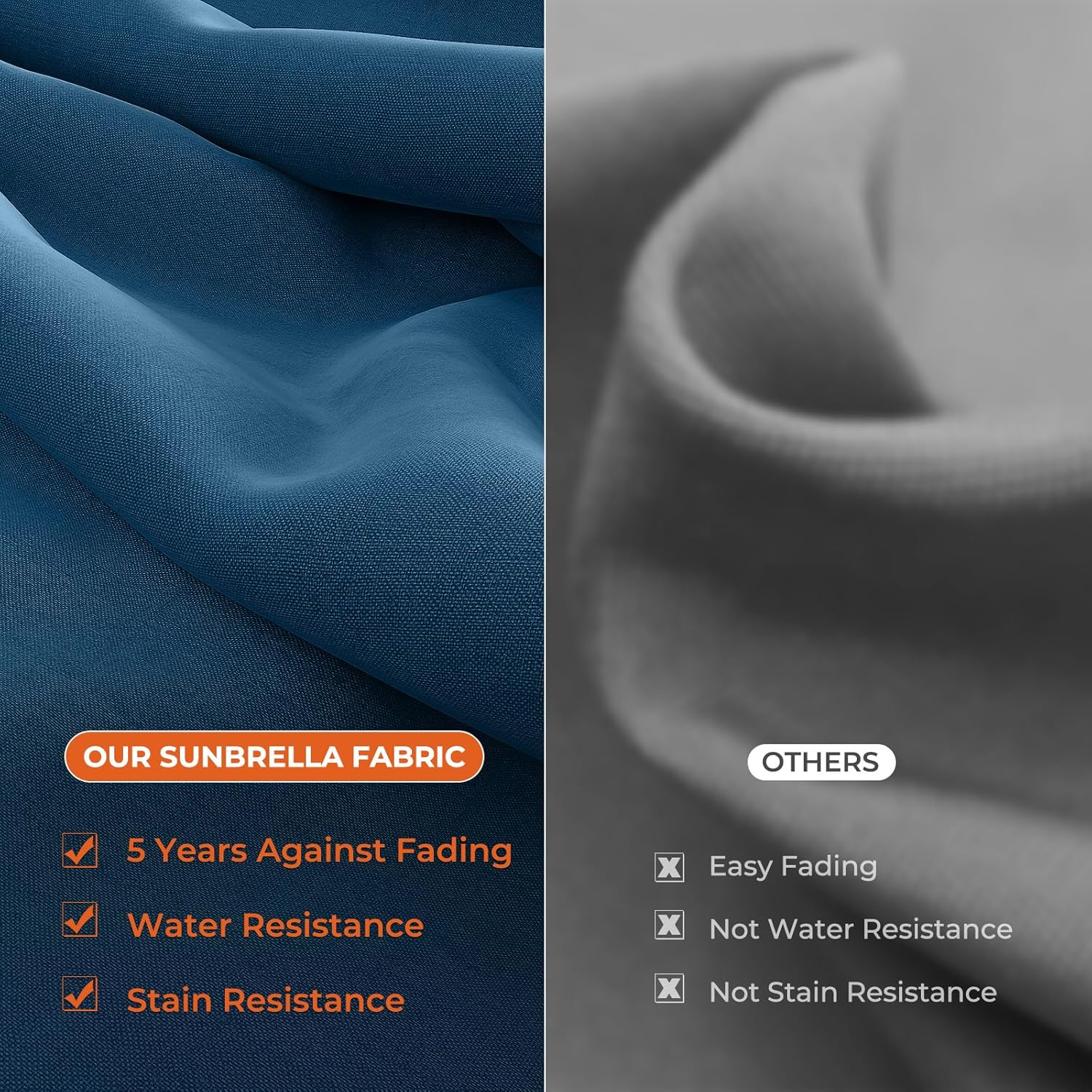 - Sunbrella Fabric Canopy: Made from 100% solution-dyed acrylic, the 270g Sunbrella fabric is breathable, water- and stain-resistant, and offers 5-year fade protectionโperfect for long-lasting outdoor use.