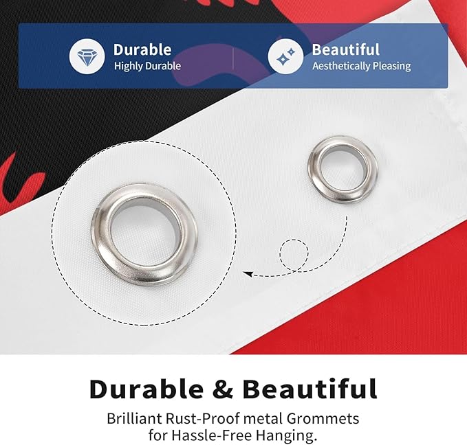 - This 2x3 ft flag Albania Albanian Flag banner is stitched double all around the edge and strengthened by two brass grommet to increase flag life and prevent fraying. Installation and disassembly are very convenient.