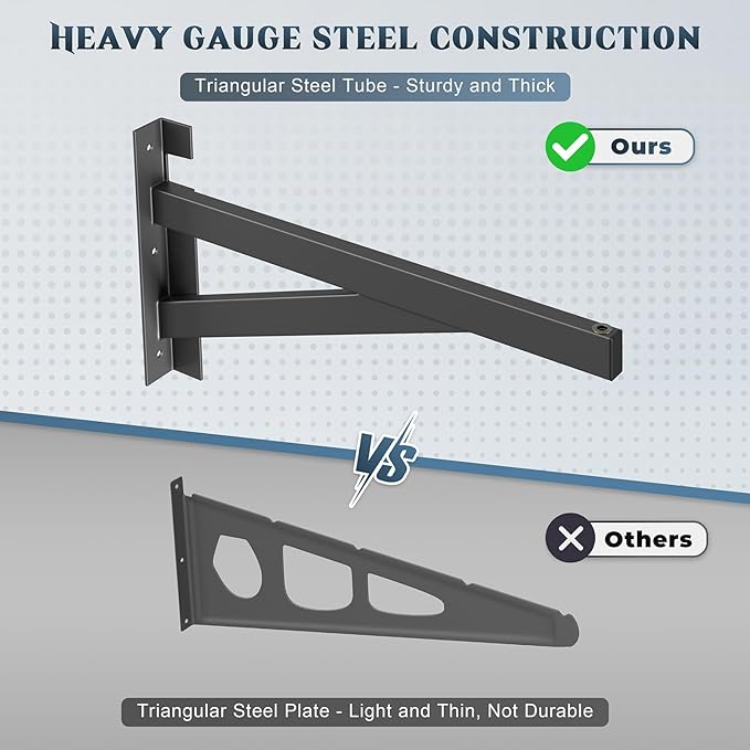 - 🔄【Adjustable Spacing for Any Wall Studs】- Tired of mismatched stud spacing? Jusgym’s exclusive bracket design adapts to ANY wood stud layout, eliminating alignment hassles. Customize shelf heights freely to fit tall items like ladders or short bins with zero limitations.