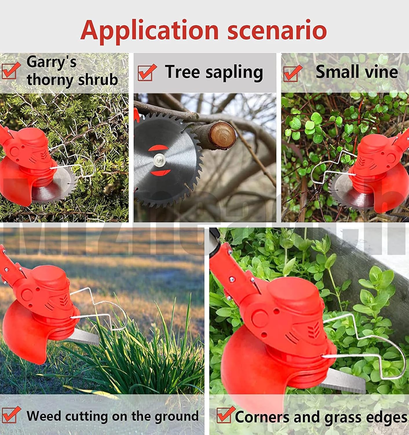 - 3 Types of Cutting Accessories:This battery powered weed wacker set is the best on the market, with 10 plastic cutting disc, 4 strip shape cutting disc, 3 round cutting disc. The plastic cutting disc are perfect for trimming soft grass, the strip shape cutting disc are ideal for trimming lawns, weeds and small shrubs, and the round cutting disc are the best for trimming thicker shrub branches. The accessories are strong, sharp and easy to clean