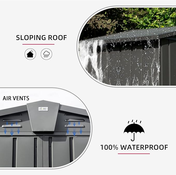 - π οΈ High-quality Material - The outdoor metal shed uses thicker galvanized steel and a durable framework to ensure safe and all-weather use. Overlapped wall panels offer waterproof and moisture-resistant properties, perfect for all weather conditions.