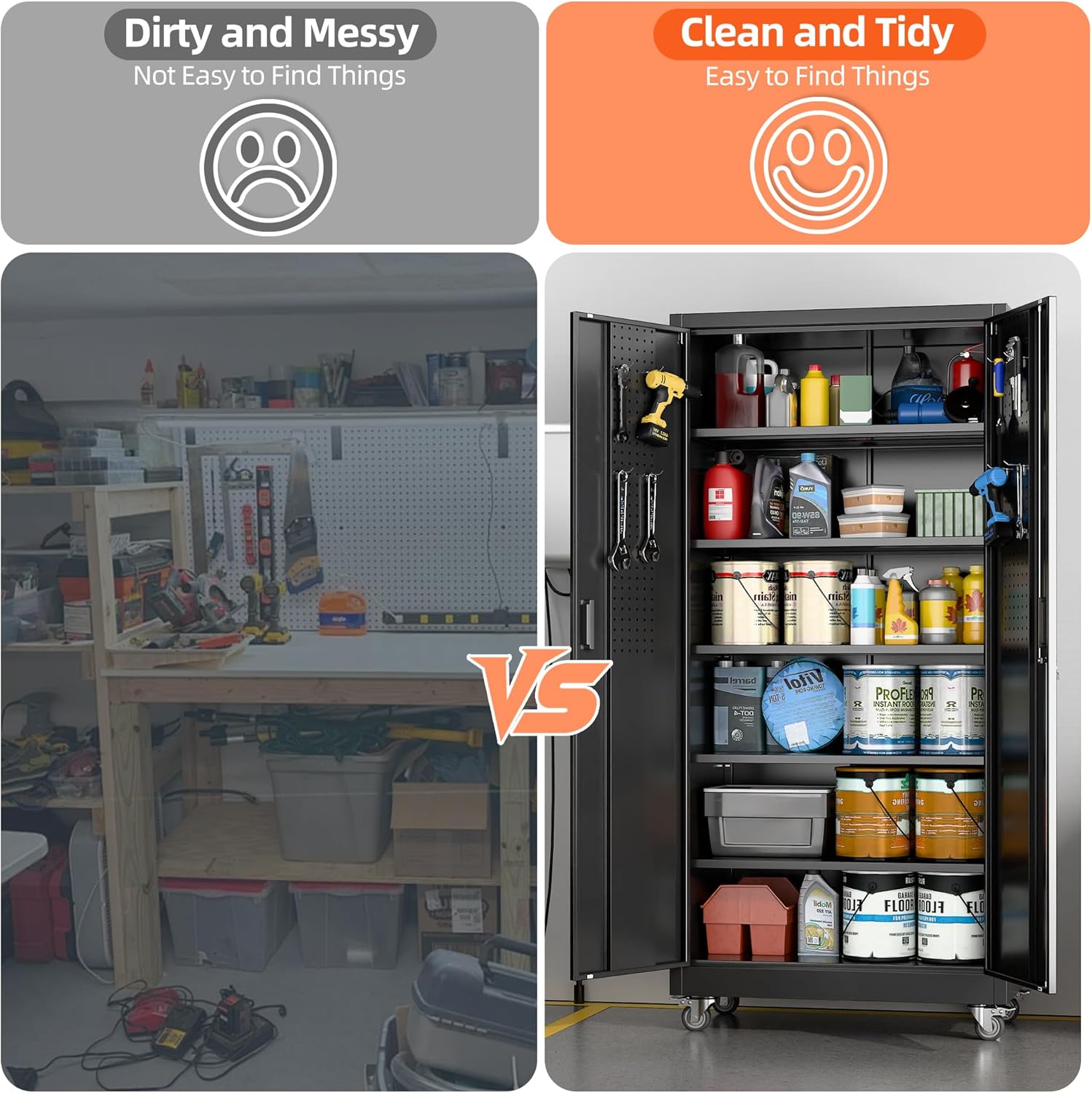- Universal Rubber Wheels: Metal garage cabinet with wheels comes with 4 lockable universal silent casters, providing full protection for all surfaces from scratch yet easy to move around