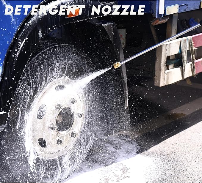 - 【4 Versatile Nozzles – Precision Cleaning Made Easy】Quickly switch between 0°, 25°, 40°, and soap nozzles to match any cleaning task. From blasting away tough grime to gently rinsing your car or patio furniture, this washer is perfect for gutters, sidewalks, decks, RVs, tools, and outdoor living spaces.