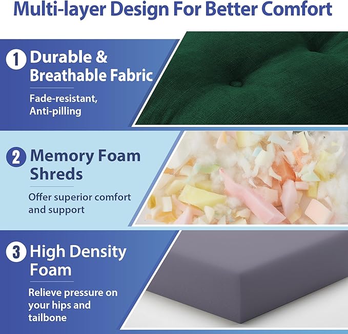 - 【Premium Memory Foam Support】: Designed with high-density memory foam for long-lasting support and comfort, our dining chair cushion offers superior comfort and support, relieving pressure on your hips and tailbone during extended seating