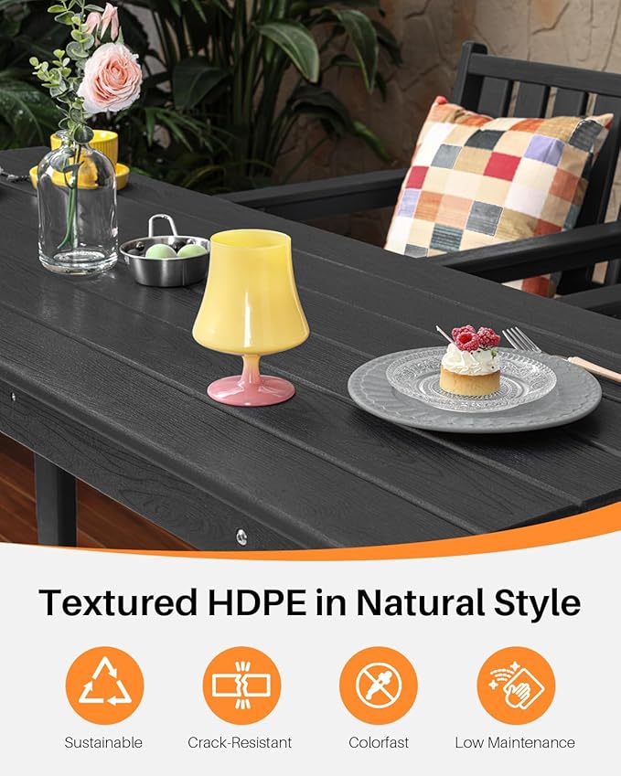 - Durable HDPE Bar Stool Set for Year-Round Use: This Obsidian 3-piece patio bar set includes two Adirondack-style HDPE bar stools and a matching 60"L x 22"W x 41"H rectangular outdoor bar table. Made from premium HDPE lumber with an authentic woodgrain finish, this set resists fading, cracking, and moisture damageโideal for balconies, patios, pool decks, or outdoor bars throughout all seasons.