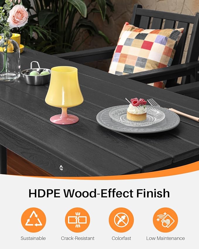 - Low-Maintenance and Long-Lasting Appeal: The HDPE material requires no sealing or paintingโjust clean with mild soap and water. Backed by SeeHillโs reliable customer service, this obsidian Adirondack bar table combines lasting style and outdoor resilience for years of enjoyable gatherings.