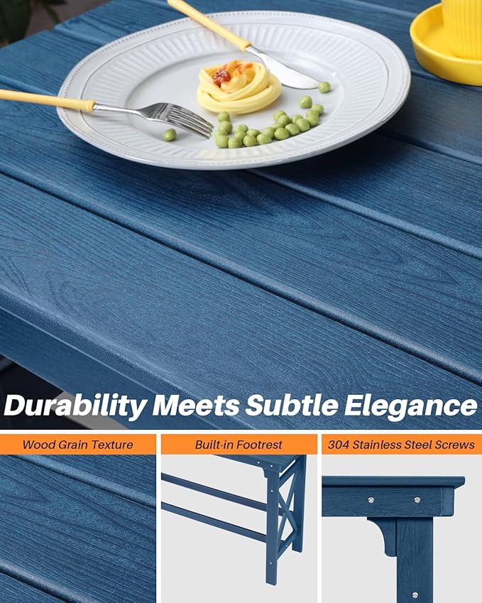 - Navy HDPE Bar Table: This rectangular Adirondack outdoor bar height table features a deep navy HDPE lumber surface with a realistic woodgrain texture, combining classic elegance with weatherproof durability. This hdpe bar table resists fading, moisture, and UV damage, ideal for outdoor furniture setups on patios, balconies, or poolside areas.