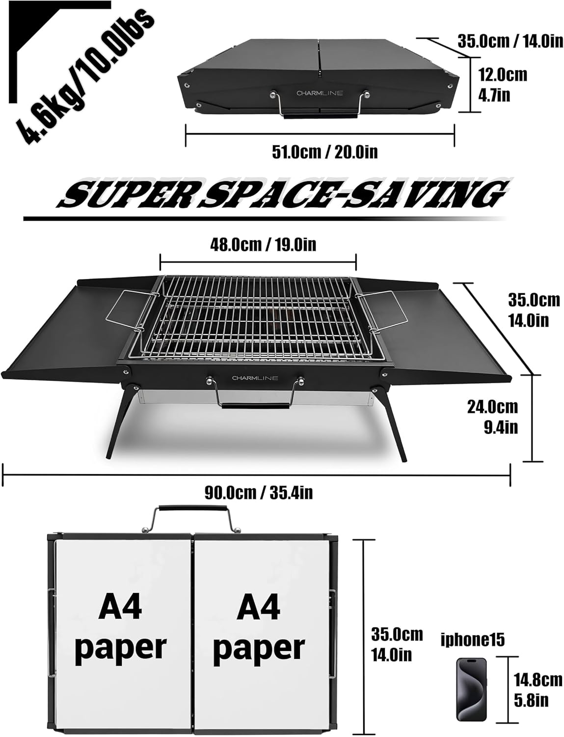- Compact Yet Powerful: Barbecue grill suitable for 3-5 people. When the grill is folded up it is only 20*14*5". Approximately the size of two A4 sheets of paper. It is great companion of camping grill.
