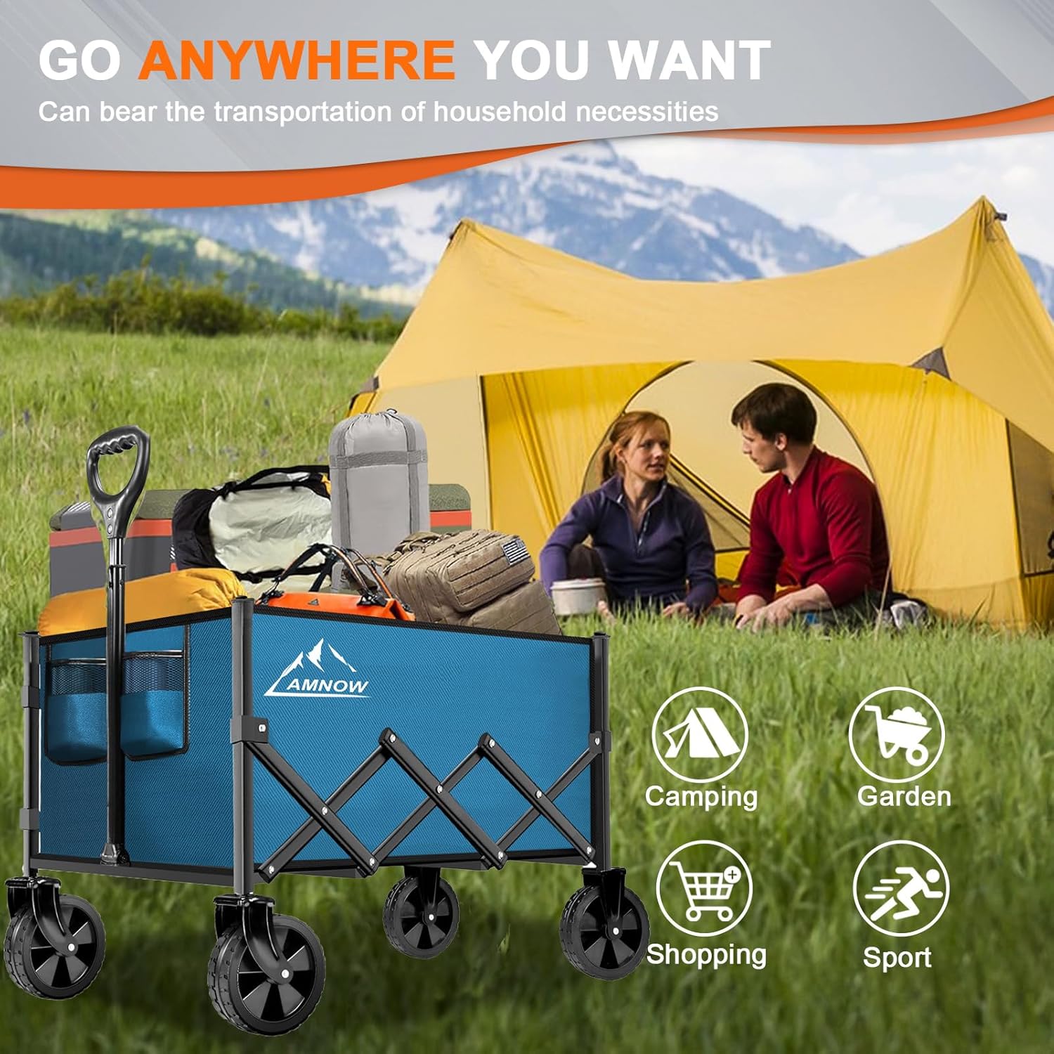 Collapsible Folding Wagon Cart, 350LBS Utility Large Capacity Cart Foldable Wagon with All Terrain Wheels, Grocery Wagons Carts for Garden Shopping Sports Camping, Blue