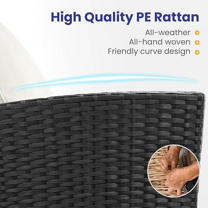 - All-Weather Durability: Built to last,the patio furniture set combines rugged construction with low-maintenance care. The powder-coated steel frame and handwoven PE wicker can spend less time maintaining and more time enjoying your outdoor