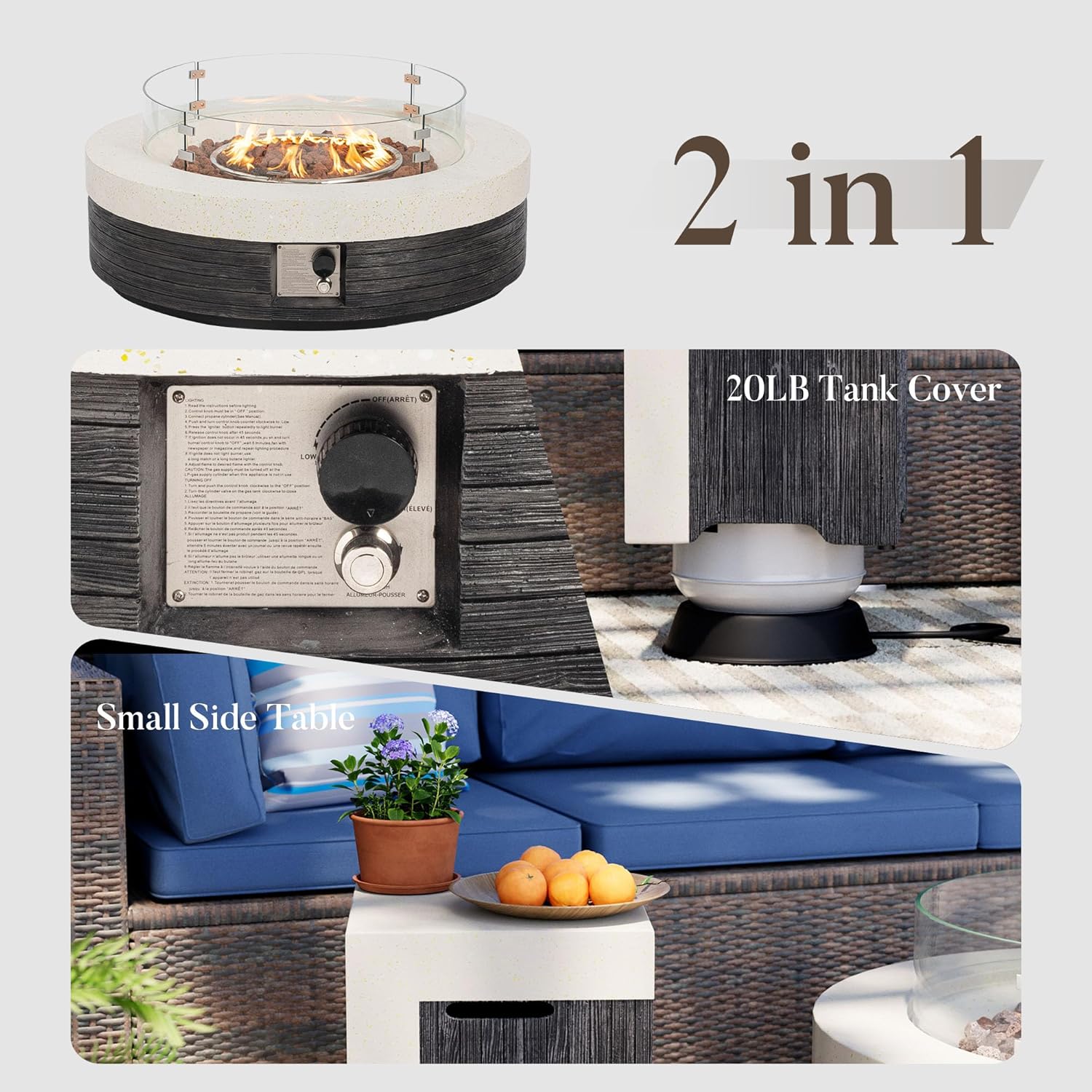 - Multi-functional Fire Table & Tank Cover: With a 10-inch widened edge, it securely holds wine glasses and small dishes, while the tank cover doubles as a sleek side table. Perfect for backyard gatheringsโenjoy warmth, convenience, and style in one.