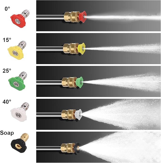 - 【1/4" Quick-Connect 】: Spray wand with 1/4" standard quick-connect end for adding surface cleaner, extension wand, undercarriage cleaner, etc. and for replacement of foam cannon and nozzle tip.