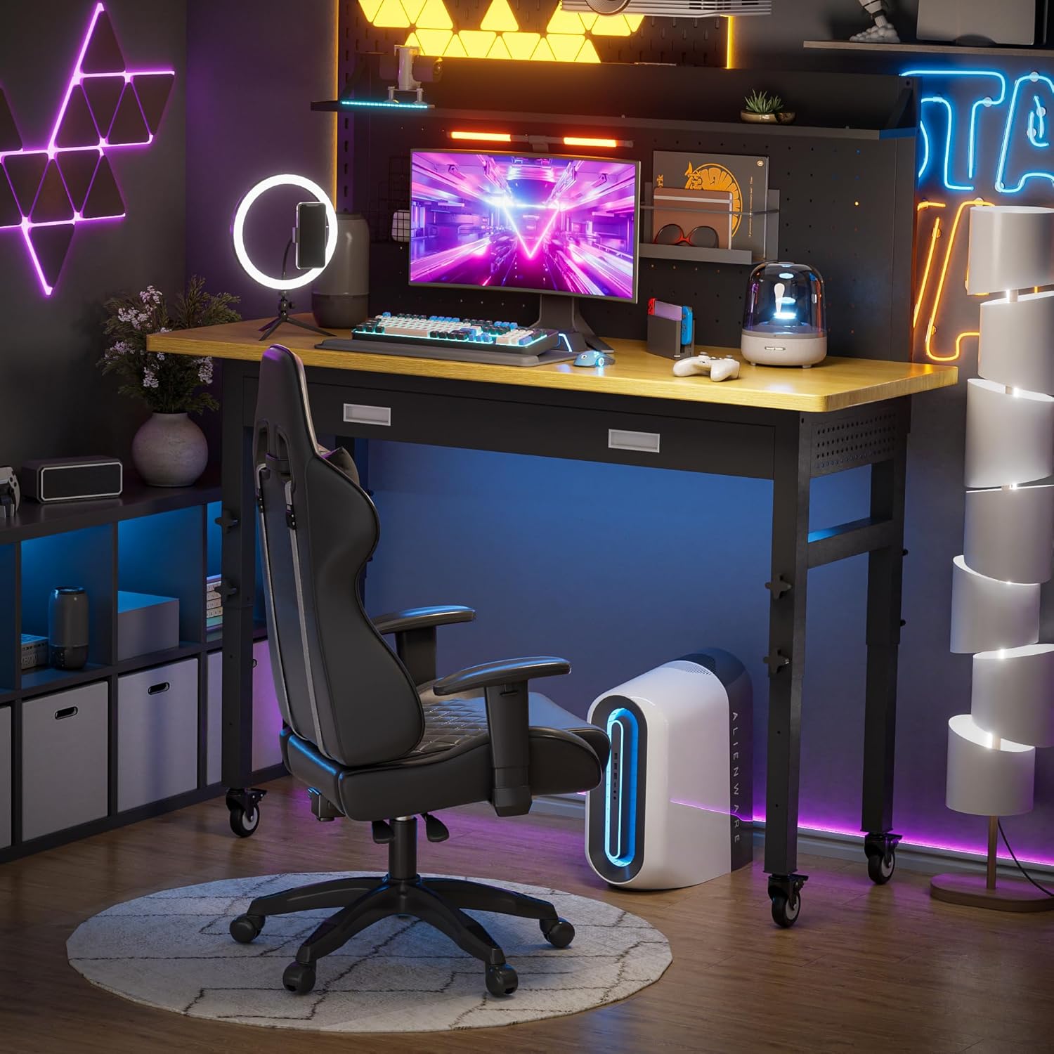 - Heavy-Duty and Durable Construction: The table top of this heavy duty workbench is made of solid wood and finely polished to prevent cracking, the legs and additional support rods are made of reinforced carbon steel with a weight capacity of over 2000 lbs