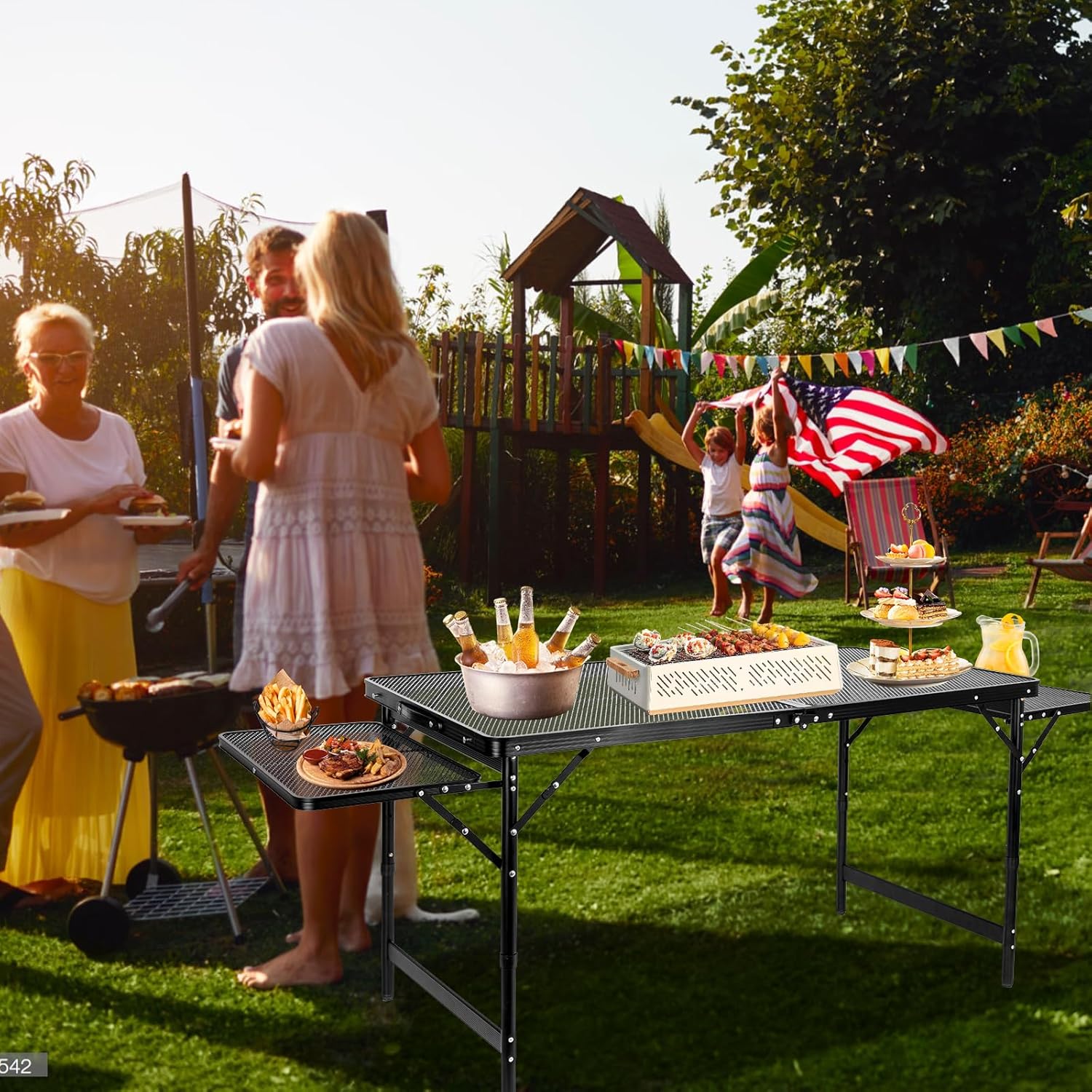 - Foldable Table Extension Boards - 1. Add individual 2 support rods for the extension board - Effectively Reducing extension board deformation by 30%. 2 Increase the area of the extension board by 10% - We add a connecting rod at the junction of the extension board and table legs to increase the usable area. If you need more space to place seasonings, food, snacks, drinks, you can open the extension board to get more space for use ( 5.7 FT). If you want to reduce the usable area, you can also fold the table up to 4 FT
