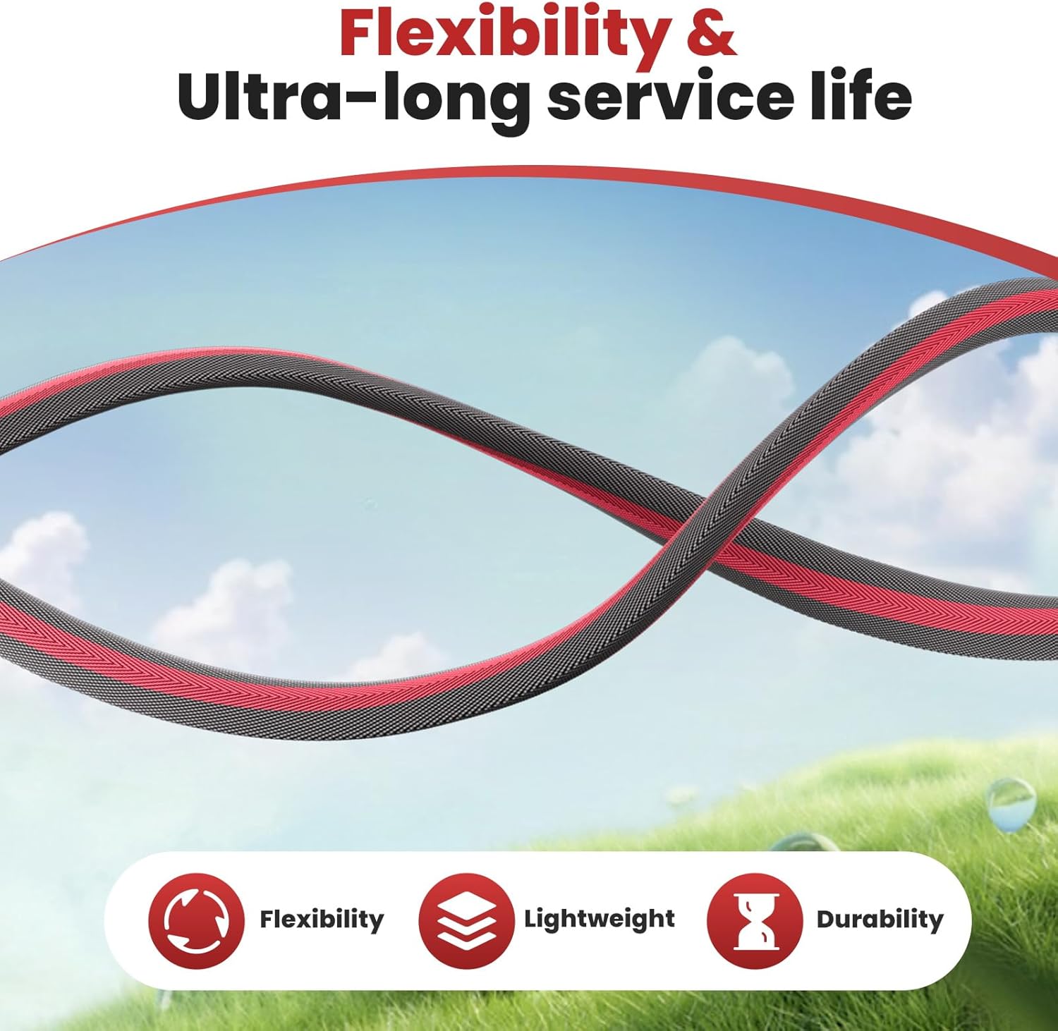 - π Ultra-Durable 8-Layer Latex Core β Reinforced with high-density polyester mesh and 2X latex layers, this non-expanding garden hose resists leaks, cracks, and bursts under 150-450 PSI, lasting 3X longer than standard hoses.