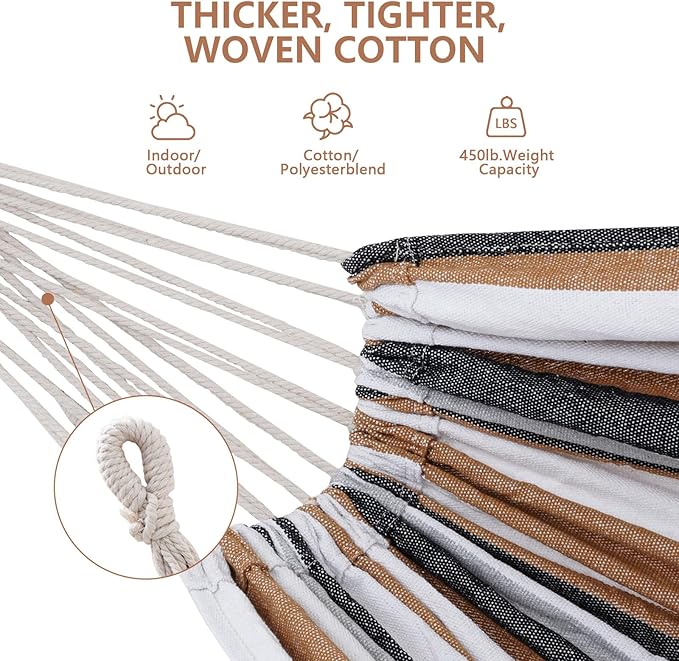 Double Hammock with Stand Included 450lb Capacity Space Saving Steel Stand,Premium Carry Bag Included,Suit for Outside,Indoor,Yard,Camping(Coffee).