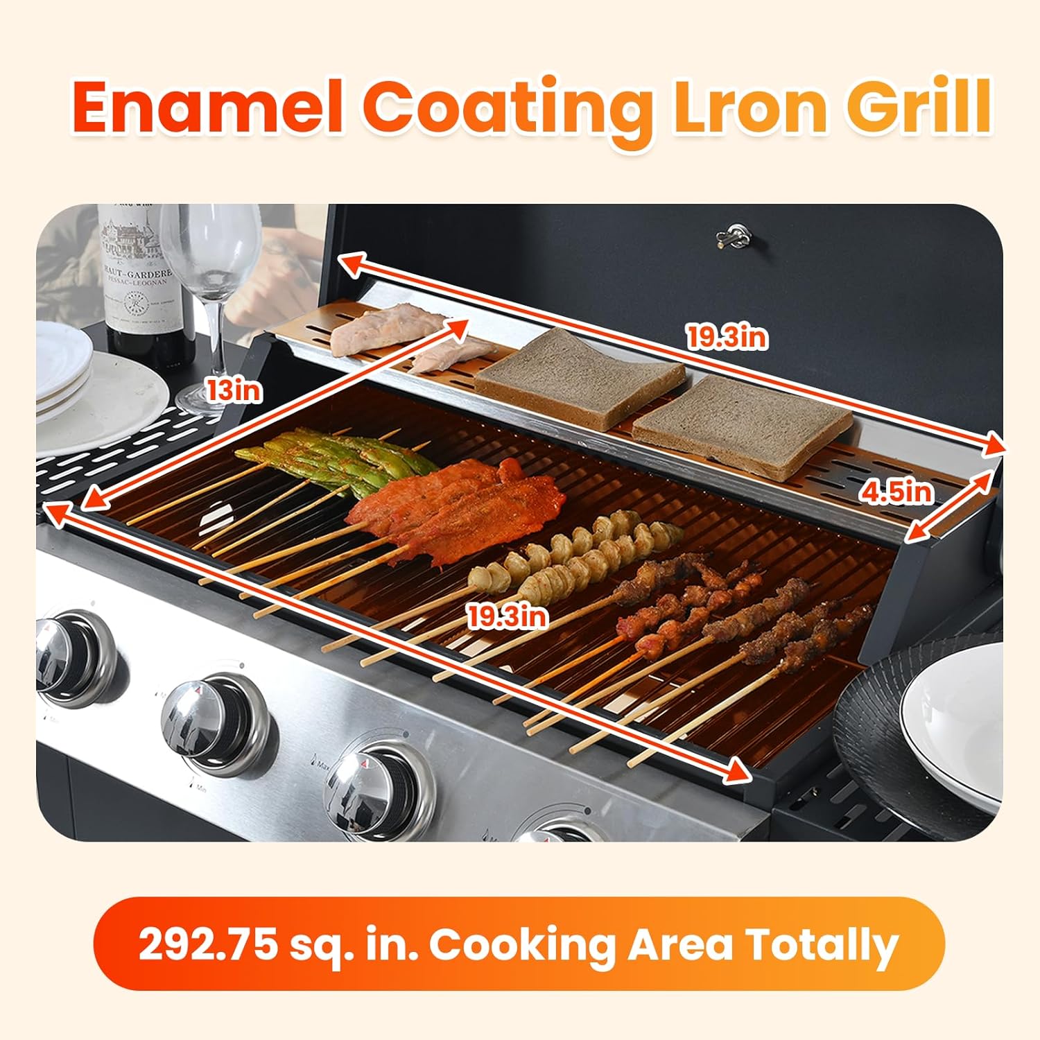 - π Spacious Cooking & Warming Areas - Equipped with porcelain-enameled wire grates, this gas grill offers a generous 19.3" x 13" cooking area plus a 19.3" x 4.5" warming rack. Youβll have ample space to sear steaks, grill burgers, and keep side dishes warmβall at the same time. Perfect for family meals and outdoor gatherings.