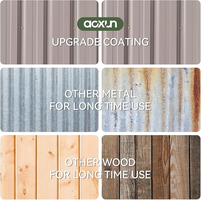 - Heavy-Duty Construction for All-Weather Durability: Built to last, this storage shed features a galvanized steel frame with a powder-coated finish, offering superior rust resistance and UV protection. The rigidly engineered panels withstand heavy loads and adverse weather, while the integrated top vents promote airflow, reducing condensation. The sloped roof design enhances water runoff, and the stainless steel latch lock secures your belongings from theft and pests.