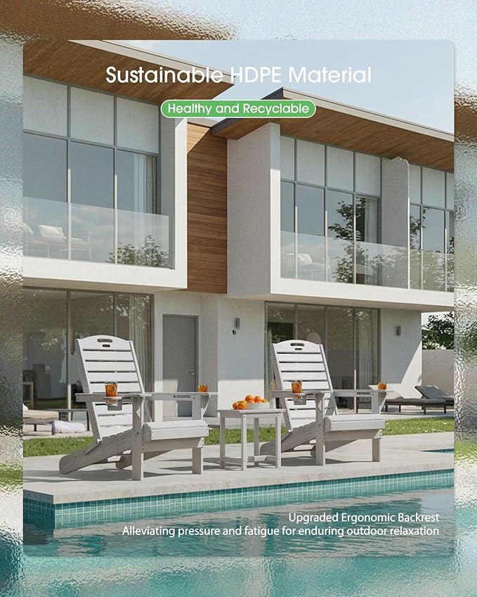 Adirondack Chairs Set of 6, Outdoor Fire Pit Chairs, HDPE All-Weather Adirondack Chairs with Cup Holder, Lawn Chair for Deck, Patio, Garden (White)