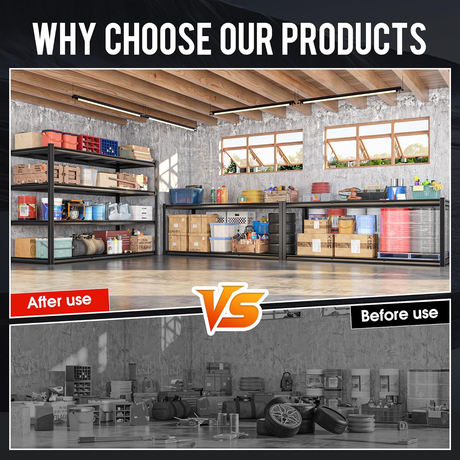 - ใUltra-Safe Industrial-grade Load-bearing Systemใ Made of commercial-grade cold-rolled steel and reinforced structure, The garage shelving is specially designed for heavy-duty warehouses. The specially designed powder coating on the surface not only prevents rust and scratches but also makes it easy to clean. It is equipped with a professional anti-tipping kit as standard, ensuring absolute stability. This is not merely a tool, but a lifelong investment you plan for your garage