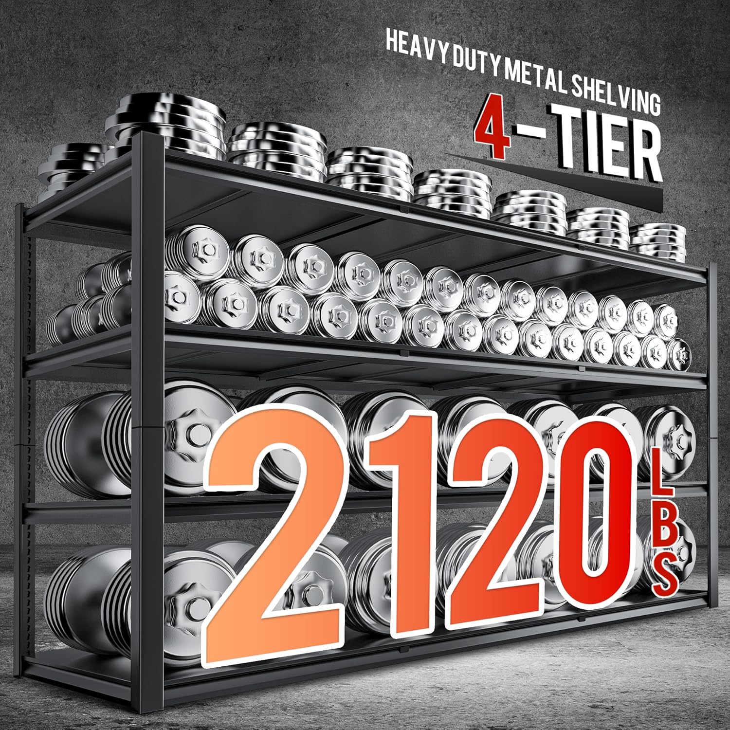 59.8" W x 59.8" H x 24.2" D Metal Storage Shelves, 2120LBS Garage Shelving Unit with Adjustable Shelf, 4 Tier Storage Rack for Garage, Pantry, Warehouse, Basement, Black, 2 Pack