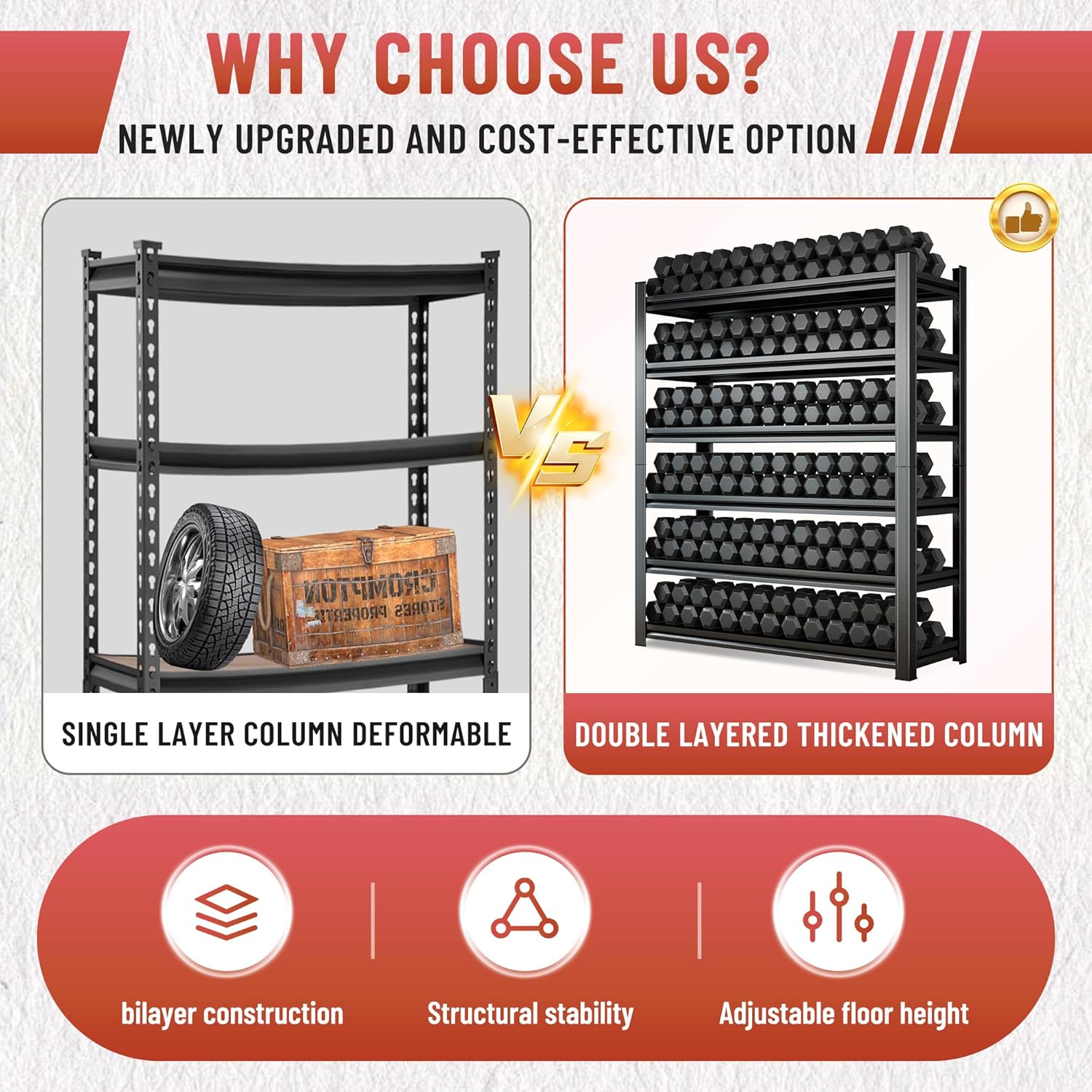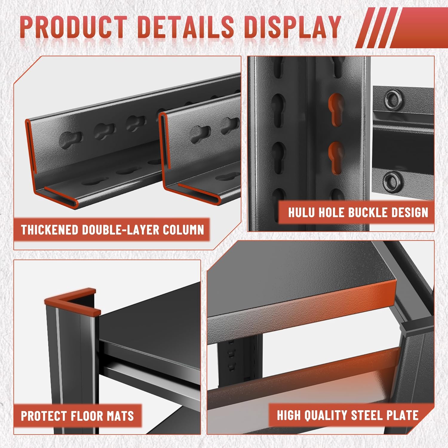 - ใHeavy-Duty ConstructionใOur Garage Shelving is built to last. With fully steel shelves and double-thick columns, this shelving unit provides exceptional strength and durability, ensuring that your storage needs are met with confidence